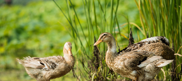 ? ? ? ? 鴨(Anas domestica),通稱“鴨”,鳥綱,雁形目,鴨科。喙長而扁平,尾短腳矮,趾間有蹼,翅小,覆翼羽大。根據(jù)專家們的研究,家鴨是由綠
